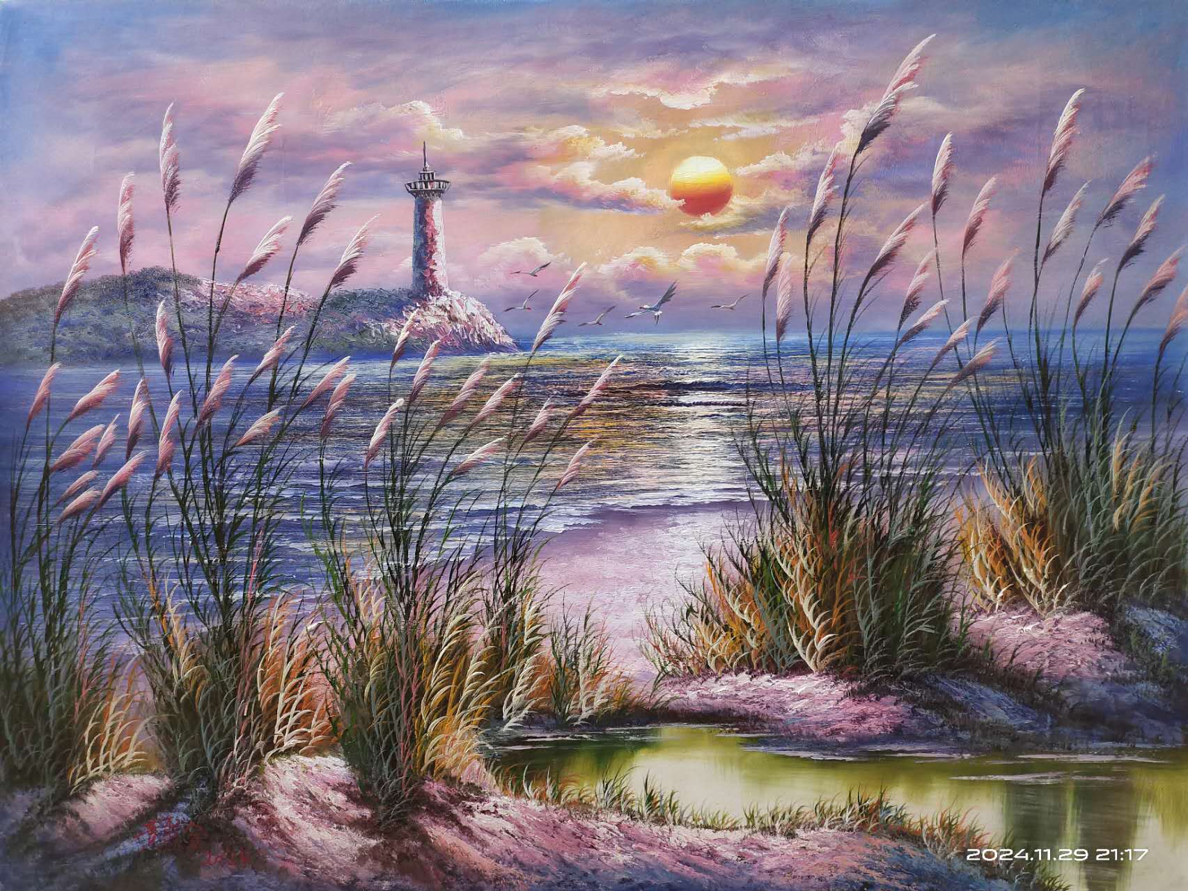 莆田市油画艺术产业协会会员 黄联合 沙滩芦花